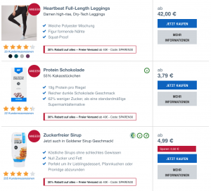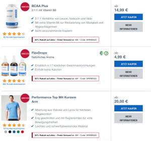 Als wären 30 Prozent Nachlass auf das gesamte Sortiment nicht schon genug, so senkt MyProtein momentan auch noch das Limit für Gratisversand. Dadurch kann man sich auch Nachschub von Kleinigkeiten, wie Flavdrops, Kreatin oder Erdnussbutter besorgen, ohne zusätzliche Versandkosten zu haben.