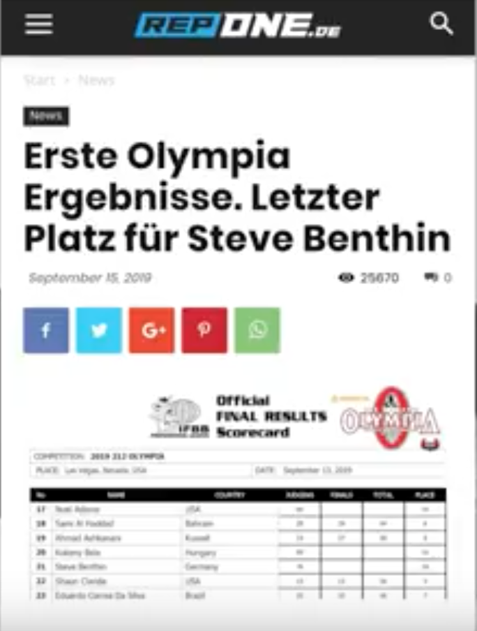 Erdem vermutet, dass es sich einfach nicht so gut verkauft, wenn man einen ESN Athleten als „nicht so erfolgreich“ darstellt. Doch die Fans haben natürlich auf einen Statusbericht aus Vegas gewartet. Komischerweise hat man dann über Steve Benthin berichtet. Schließlich ist dieser auch nicht bei ESN und eine Überschrift à la „letzter Platz“ klingt natürlich auch spannend und schädigt nicht die eigenen Einnahmen. Dass es bereits eine große Leistung ist überhaupt beim Mr. Olympia mit dabei zu sein fällt unter den Tisch.