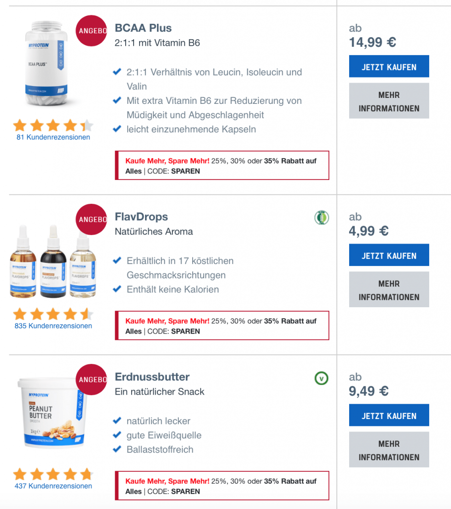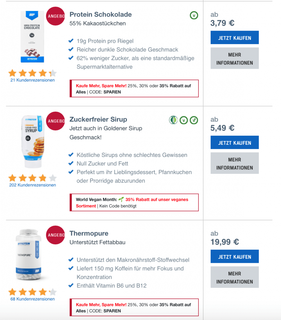 Zum Wochenende hat der Supplement Online Shop MyProtein mal wieder einen ordentlichen Sale parat. Diesmal könnt ihr mit dem „Pay-Day Deal“ bis zu 35 Prozent auf eure KOMPLETTE BESTELLUNG sparen!