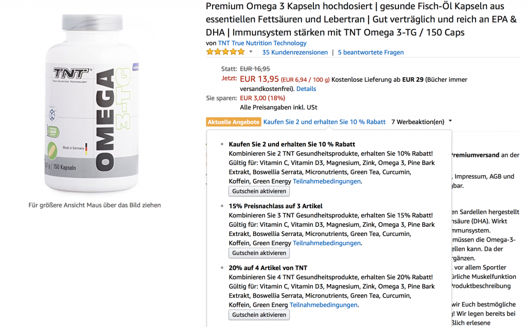 Mehr kaufen, mehr sparen! Ab zwei Produkten aus der TNT Health Linie bekommt ihr satte Rabatte. Je nach Menge bis zu 20% Nachlass!
