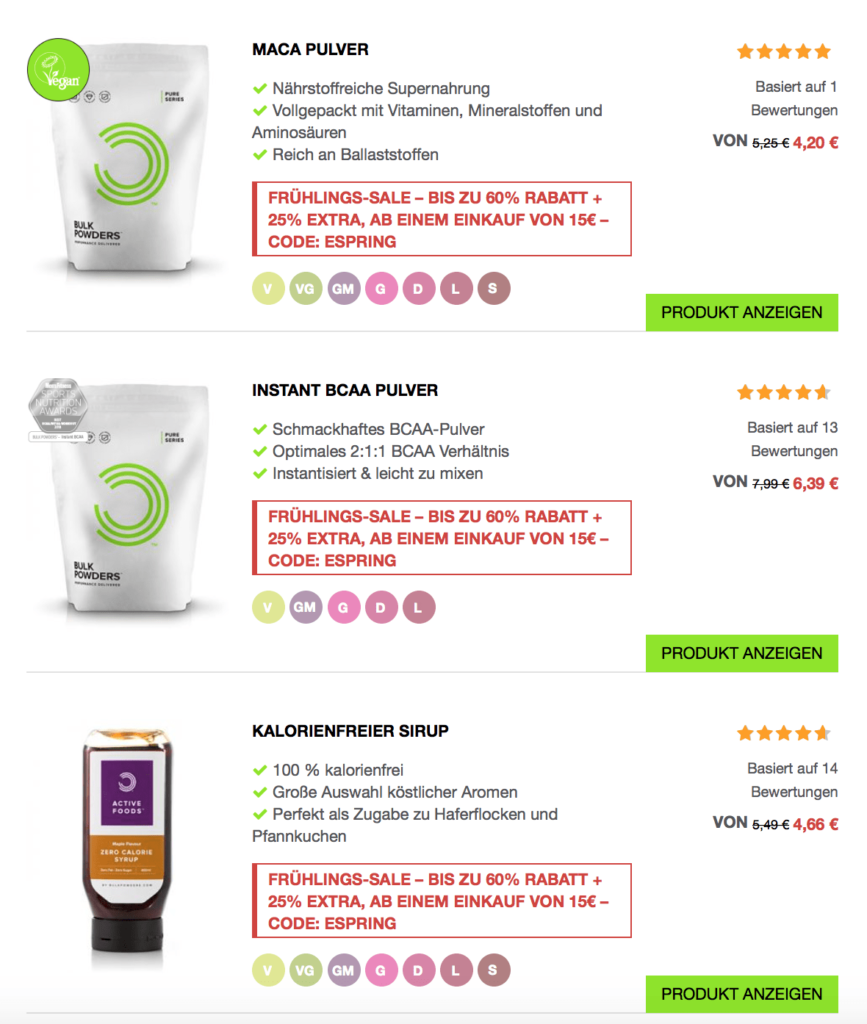 Der englische Supplement Shop Bulk Powders hat pünktlich nach Ostern den Frühling eingeläutet. Deshalb gibt es für kurze Zeit bis zu 85 Prozent Nachlass auf Deinen Einkauf!