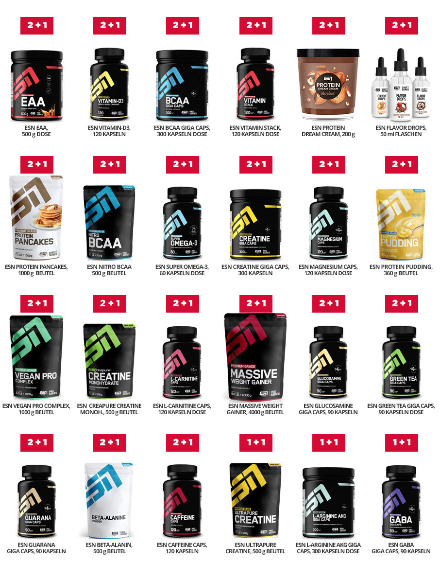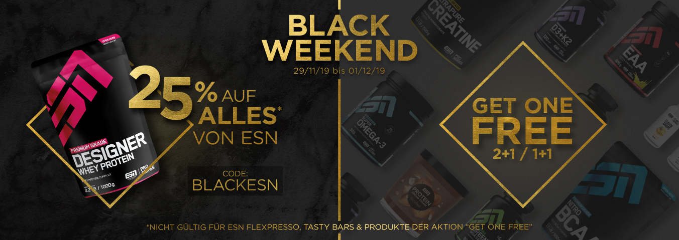 Als besonderes Highlight gibt es 25 Prozent Nachlass auf alle Produkte der Hausmarke ESN. Doch das war noch nicht alles. Zusätzlich könnt ihr bei einigen Artikeln auch nur eins bezahlen und erhält direkt zwei! Dazu müsst ihr im Warenkorb einfach nur den Gutscheincode „BLACKESN“ eingeben und schon profitiert ihr! Eine kleine Übersicht haben wir im Folgenden für euch: