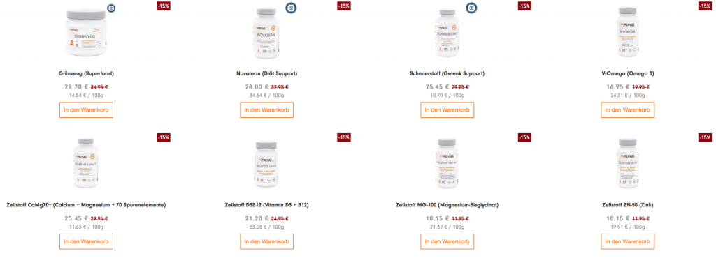 Essentials wie Omega3 und Gelenksupport sind ebenfalls zu einem günstigeren Preis verfügbar! Die Aktion endet allerdings am Dienstag Abend.