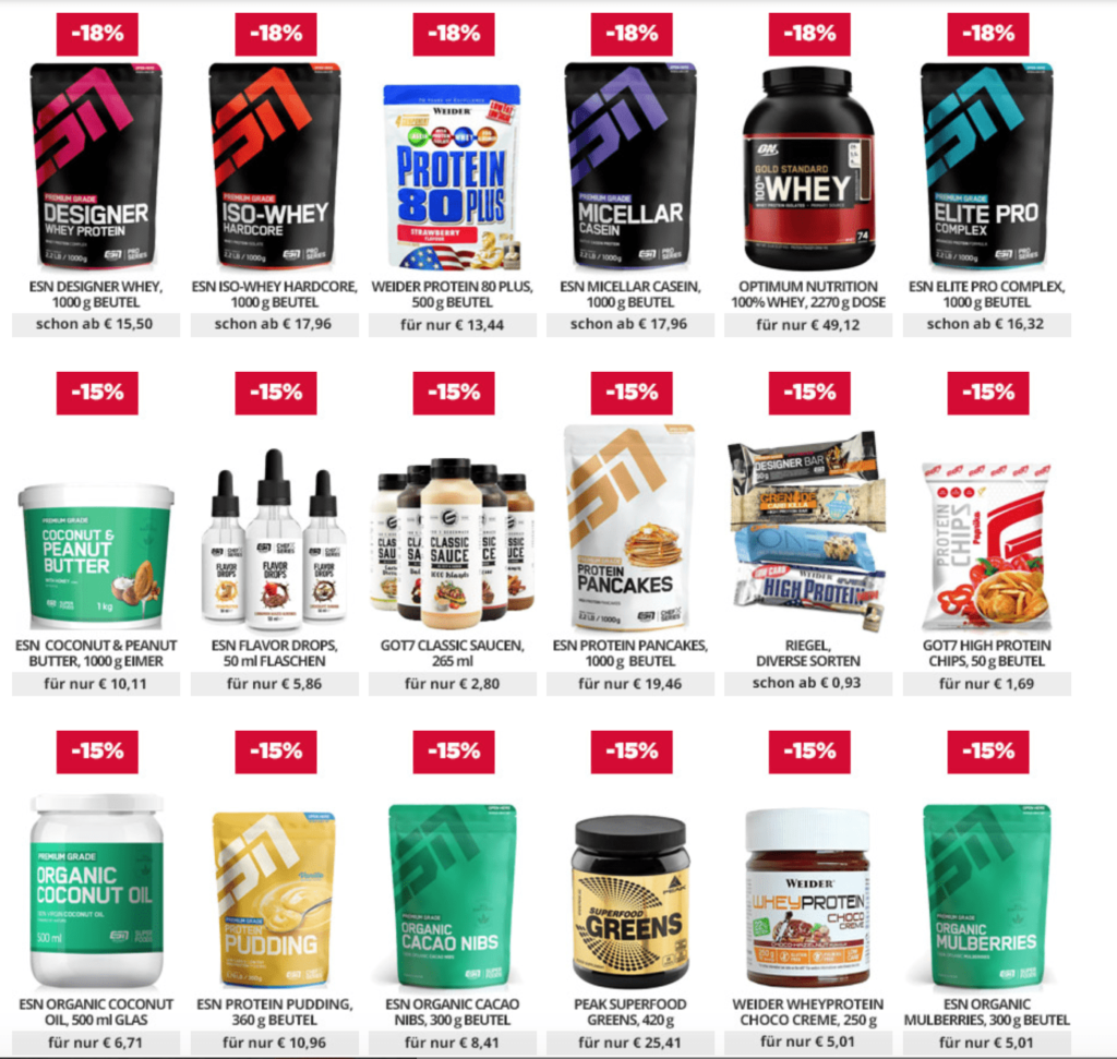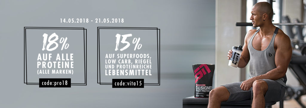 Neben der Hausmarke ESN, sind auch alle anderen Marken von der Aktion betroffen. Sichere Dir also direkt Deine Lieblingsprodukte. Immerhin gibt es auch Proteinriegel und diverse Creams zum Vorteilspreis!