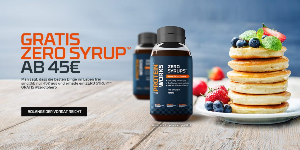 Egal ob Whey Protein, vegane Produkte oder Fitnesssnacks, der Shop hat garantiert für jeden etwas dabei. Ab 45 Euro bekommt ihr einen kalorienfreien Zero Sirup for free – allerdings nur, solange der Vorrat reicht!