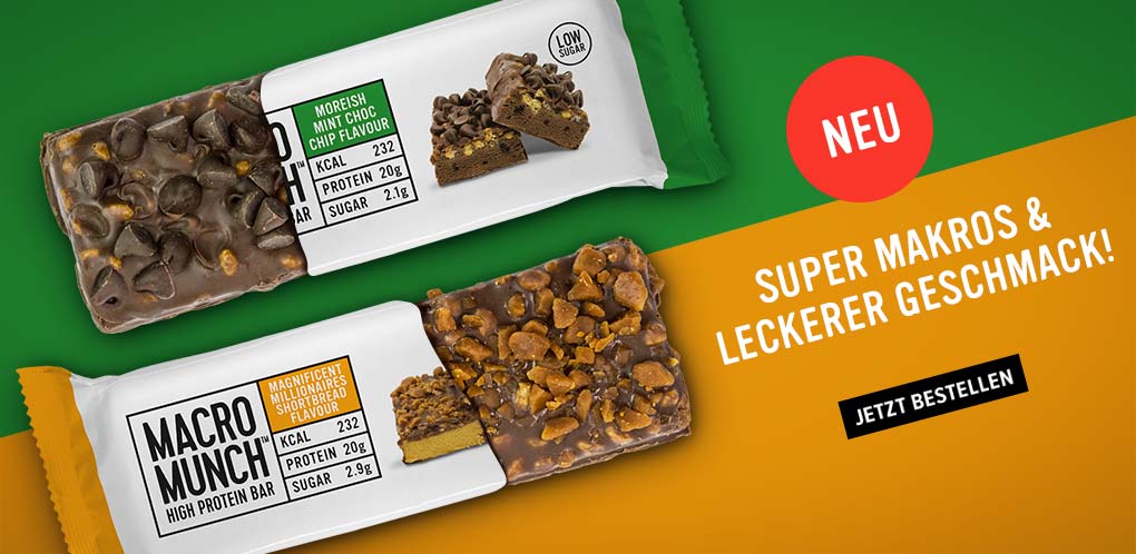 Wenn sich der Einkauf da mal nicht lohnt! Statte Dich direkt mit den Neuheiten der englischen Supplement Marke ein oder stöbere im großen Sortiment von Bulk Powders. Immerhin sind Protein Cookies, flüssiges Eiklar und vegane Proteinriegel nicht die einzigen Highlights, die die Marke zu bieten haben! Zusätzlich gibt es auch noch einen MACRO MUNCH RIEGEL GRATIS!