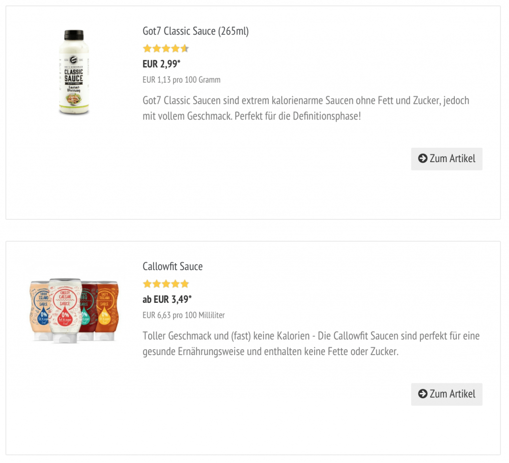 Wie Du siehst, gibt es hier auch süße Optionen, falls Dich während der Diät doch mal Gelüste „jagen“. Nutze also die Gelegenheit und decke Dich mit Deinen Favoriten ein. Einfach den Gutscheincode „SAU15“ im Warenkorb eingeben und von dem Angebot profitieren!