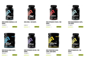 Darunter fallen unter anderem Kreatin, BCAAs, Vitamin D, Omega 3 und viele weitere essentielle Supplements: