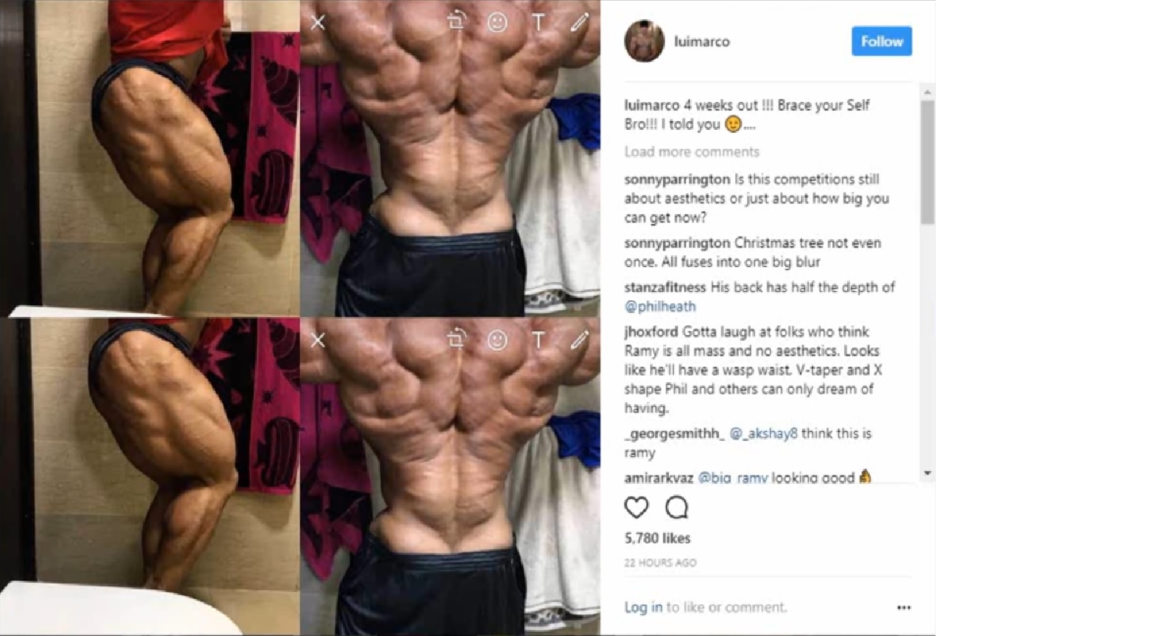 Allerdings hielt sich Ramy, was seine muskuläre Unterkörper-Entwicklung angeht, bis dato stets „bedeckt“. Auch seinen Rücken, der von Kritikern gerne für eine der größeren Schwachstellen gehalten wird, zeigte der Mr. Olympia-Anwärter nur äußerst spärlich. So sah man den Ägypter bei seinen Form-Updates meist nur frontal und von der Seite in langer Trainingshose bekleidet unter „anabolem Studiolicht“ posieren anstatt von allen „Seiten“ in für Bodybuilder typischem „Bühnen-Outfit“. Die aktuellsten Bilder bringen nun jedoch genau das zum Vorschein, was der Bodybuilder bis zum jetztigen Zeitpunkt „wie einen geheimen Schatz“ behütete: seine Beine und seinen Rücken. Und was man dabei zu Gesicht bekommt, bringt sogar selbst den letzten Kritiker ins Staunen. Wurde Big Ramy in der Vergangenheit immer wieder vorgeworfen, dass es ihm im Unterkörper und unteren Rückenbereich an Definition und Härte mangeln würde, scheint er nun auf den Bildern „definierter“ und härter als jemals zuvor zu sein. Gleichzeitig – und das ist eigentlich das wirklich Bemerkenswerte an der Transformation – soll Big Ramy laut Angaben des YouTubers, luimarco, über 20kg MEHR (!!!) wiegen als beim Mr. Olympia letzten Jahres.