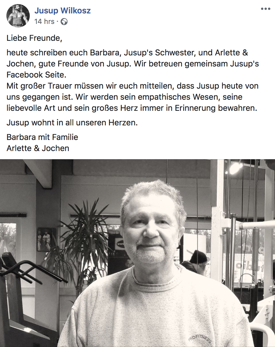Die Freunde und Familie von Jusup Wilkosz haben aktuell auf seiner Facebook Seite bekannt gegeben, dass der Profi im Alter von 68 Jahren verstorben ist. Details zum Tod gibt es bislang noch nicht. Vielmehr will seine Community den Profi in guter Erinnerung halten. Wilkosz war zu seiner Zeit einer DER Top Athleten aus Deutschland und konnte sich auch international enorm gut aufstellen. Gemeinsam mit Arnold Schwarzenegger hatte er in den 70er und 80er Jahren enorm viele Erfolge feiern können. Schwarzenegger war dabei einer seiner Trainingspartner.
