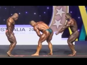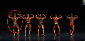 Auf dem 5. Platz landet ein unbekannter Bodybuilder (links Außen), dem während dem Posing ein vermutlich durch Synthol ausgelöster Abszess an der linken Schulter aufplatzt. An dieser Stelle sei erwähnt, dass die Szene nicht unbedingt für Zuschauer mit schwachen Nerven ist. Im Vergleich zu manch anderen Bodybuildern, ist dem Verunglückten Berichten zufolge im Anschluss an den Wettkampf nichts Schlimmes passiert, sondern konnte sich relativ schnell wieder erholen.