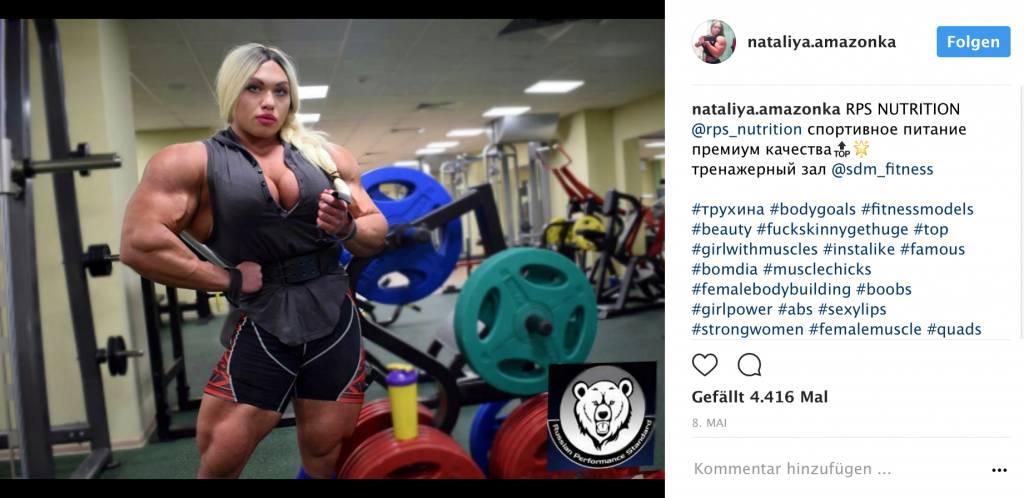 Nataliya ist nicht nur die massivste Bodybuilderin der Welt, sondern höchstwahrscheinlich auch eine der Stärksten. Neben zwei Gesamtsiegen bei den Baikal Bodybuilding Championships, ist die 25 Jährige mehrfache Rekordhalterin im Kreuzheben, Bankdrücken und Armdrücken. Neben ihren brutalen Beinen, stellt sie vor allem mit ihren extrem breiten Schultern den ein oder anderen männlichen Profi-Bodybuilderkollegen locker in den Schatten.