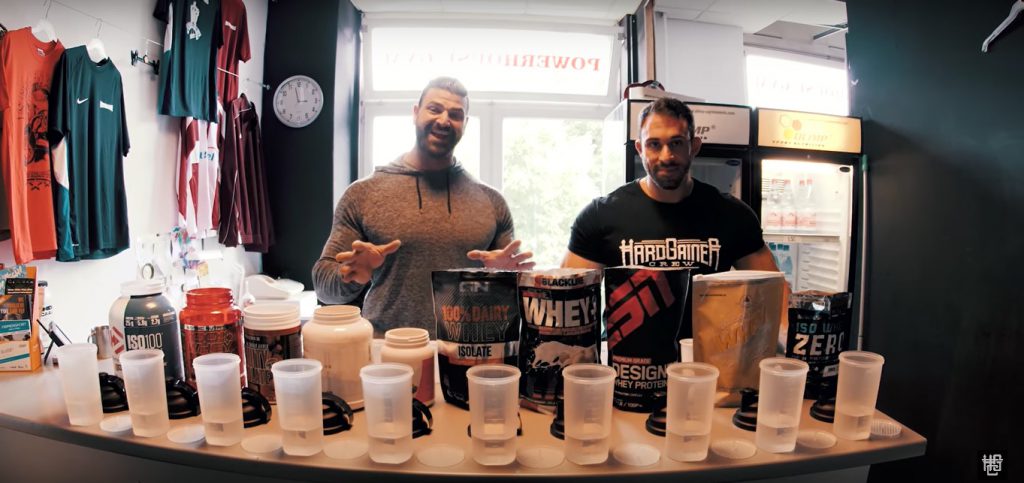 Jeder (Ja, wirklich JEDER!), der mit Krafttraining in Berührung gekommen ist, hat mindestens einmal im Leben einen Protein Shake konsumiert. Schließlich liefern Protein Shakes den „Grundstoff“ allen Muskelwachstums: das Protein! Waren die Shake noch vor 15 Jahren geschmacklich nur bedingt genießbar, stehen heutigen Fitnesssportlern unzählige Geschmacksrichtungen für nahezu jeden Geschmack zur Verfügung. Auch die beiden Jungs von der Hardgainer Crew sind schon seit über zehn Jahren leidenschaftliche Protein Shake-Trinker und durften in dieser Zeit die Evolution der Shakes „live“ miterleben. Dementsprechend riesig fallen Kevins und Vitos Erfahrungswerte diesbezüglich aus. Nachdem sich das Bodybuilder-Duo vor geraumer Zeit einer Proteinriegel-Blindverkostung unterzog, stehen nun im neuesten Video Protein Shakes auf dem Programm. Wie bereits bei den Riegeln, gilt es für die beiden „Hardgainer“ herauszufinden, von welchem Hersteller die jeweiligen Shakes stammen und ob diese tatsächlich so schmecken wie auf der Verpackung angegeben. Natürlich darf auch eine anschließende Bewertung für den Geschmack auf einer Skala von 1 (grottenschlecht) bis 10 (einfach nur perfekt) nicht fehlen.