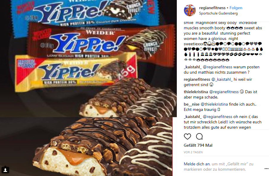 Bis zuletzt schien sich an der Lebenssituation der Beiden auch nicht viel geändert zu haben – so zumindest der Anschein in der Öffentlichkeit. Am Samstag konnte man allerdings in dem Kommentar einer relativ unscheinbaren Instagram Post von Regiane Da Silva lesen, dass sich die beiden getrennt hätten. Ursprünglich wollte Regiane mit dem Post einen Riegel ihres Sponsors bewerben. In den Kommentaren hatte dann ein Fan allerdings nicht weitere Fragen zu den Riegeln, sondern zum Beziehungsstatus der Wieder Athletin. Auf die Frage „warum posten du und matthias nichts zusammen?“ antwortete Da Silva mit einem traurigen Smiley, dass „sie und Matthias getrennt seien“. Auf den Trennungsgrund geht die Brasilianerin allerdings nicht näher ein und belässt bei ihrer kurzen und prägnanten Aussage.