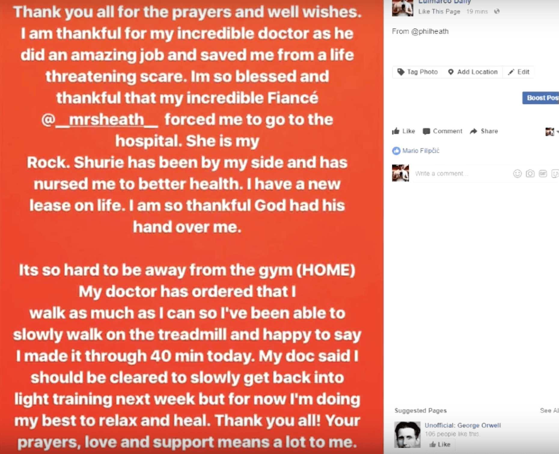 Der Mr. Olympia 2017 dürfte wohl als der kontroverseste Wettkampf in die Geschichte des Bodybuildings eingegangen sein. Noch nie sorgte der Titelgewinn von Phil Heath innerhalb der Community für mehr Diskussionen und Gesprächsstoff wie in diesem Jahr. Allen voran der YouTuber „Luimarco“ war es, der einen regelrechten „bubble gut bonanza“-Shitstorm gegen den 7-fachen Champ und die aktuellen Ausmaße des Bodybuildings anzettelte. Der Grund für die ausgelöste „Hate“-Welle war Phils aufgeblähte Mittelpartie, welche laut Meinung vieler Fans und Experten eines Champions nicht würdig sei und den ästhetischen Bodybuilding-Sport in ein falsches Licht rücken würde. Vor 5 Tagen folgte dann der Schock: Phils Lebensgefährtin postete auf Instagram, dass sich der Bodybuilder in letzter Sekunde einer lebensgefährlichen Not-OP am Bauch unterzogen habe. Obwohl sich Heath mehreren Quellen zufolge nach der Operation bereits wieder auf dem Weg der Besserung befunden haben soll, gab es bis gestern nicht wirklich ein Lebenszeichen von ihm. Nun meldete sich der amtierende Mr. Olympia zu Wort.