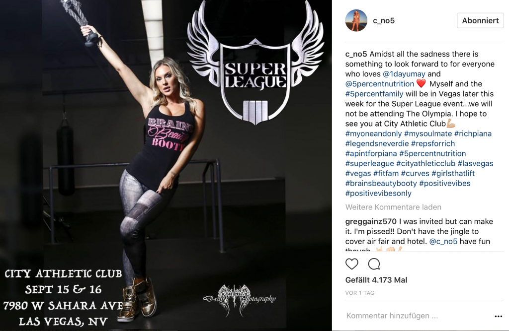 Gestern verkündeten zuerst Rich Pianas Lebenspartnerin, Chanel, kurz darauf 5% Nutrition-Athlet, Martyn Ford, und schließlich 5% Nutrition persönlich auf ihren Instagram-Accounts, dass der Hersteller dieses Jahr nicht beim Mr. Olympia anwesend sein werde. Stattdessen werde die komplette 5% Nutrition-Crew ihre „Zelte“ bei der zweiten Aufzeichnung der neu gegründeten „Super League“ aufschlagen, heißt es in den offiziellen Statements weiter. Wie es der „Zufall“ so will, findet die Super League ausgerechnet am gleichen Tag der großen Mr. Olympia-Finals statt, dem 16. September statt. Und als ob das gleiche Datum nicht schon „genug“ wäre, finden beiden Events witzigerweise in Las Vegas statt – Luftlinie nur ein paar hundert Meter.