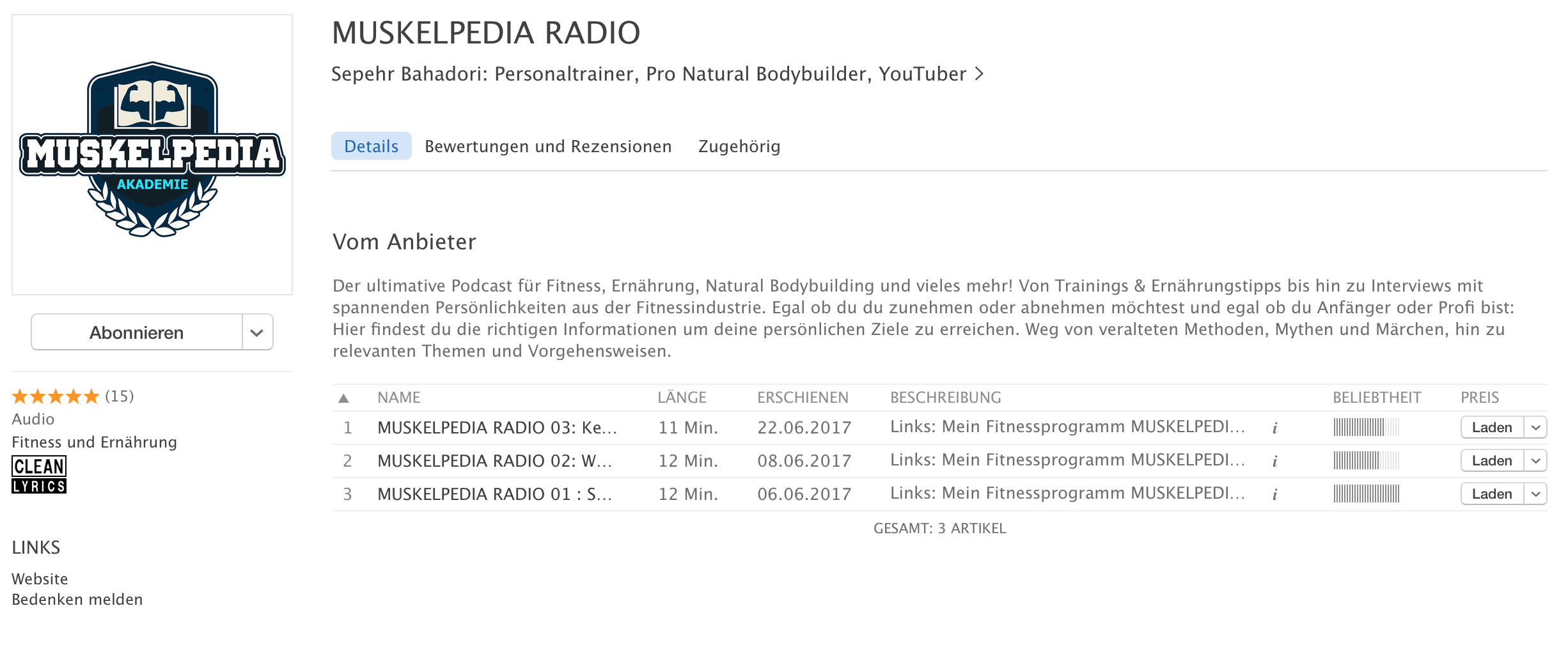 BroSep ist zweifelsohne einer der wissenschaftlich basiertesten YouTuber der deutschen Fitness Szene. Man könnte schon fast sagen, der Rocka Athlet heißt mit zweitem Vornamen „Science“ (Wissenschaft). Immerhin richtet Sep seit Jahren auch sein eigenes Training nach den aktuellsten Erkenntnissen der Wissenschaft aus. Der Erfolg in Sachen Muskelaufbau gibt ihm in jedem Fall Recht. Dieses Wissen gibt er auch an seine Community weiter. Hierfür hat der Bodybuilder seit einiger Zeit auch sein eigenes Trainingssystem „Muskelpedia“. Doch auch wer nicht Mitglied dieser Plattform ist, profitiert auf Seps Social Media Kanälen und natürlich auf seinem YouTube Channel von kostenlosen Inhalten. Zusätzlich dazu hat BroSep nun ein weiteres Projekt gestartet. ab sofort gibt es auf iTunes auch ein „Muskelpedia Podcast“. In den einzelnen Folgen greift der Coach ebenfalls die verschiedensten Themen in Sachen Muskelaufbau, Training und Ernährung auf und hinterlegt seine Erkenntnisse mit wissenschaftlichen Studien. Aktuell gibt es drei Folgen auf dem Channel. Weitere sind aber sicherlich in Planung.