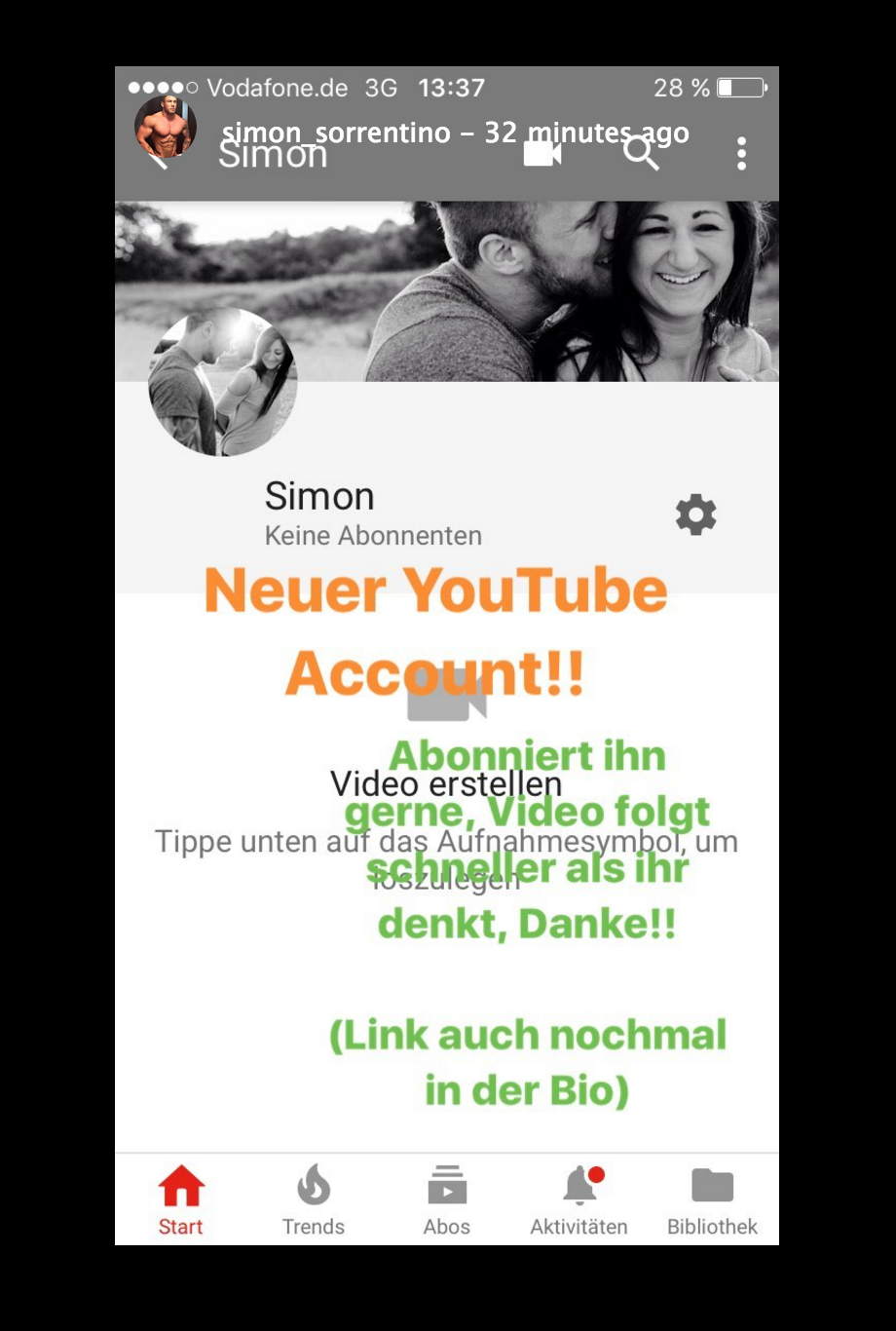 Während die halbe Fitnessszene momentan dem Hype um die neuen B.A.M. Nutrition Supplements von Road to Glory verfallen ist, hat Ex-Kollege Sai die Gelegenheit genutzt mal wieder einen Seitenhieb gegen Jil „rauszuhauen“. Seit seinem Rückzug aus dem Social Media Business wurde es in der ersten Zeit ruhiger um Simon Sorrentino. Doch je länger er sich von den Sozialen Medien fern hielt, desto größer wurde scheinbar die Sehnsucht. Wohl auch aus diesem Grund hat Simon inzwischen wieder einen eigenen Instagram Account und pflegt auch wieder regelmäßig seine Facebook Page. Nun will er wohl auch wieder mit Videos durchstarten. Ob es wohl ein Zufall ist, dass er seinen Channel gerade am Releasewochenende von B.A.M. verkündet?