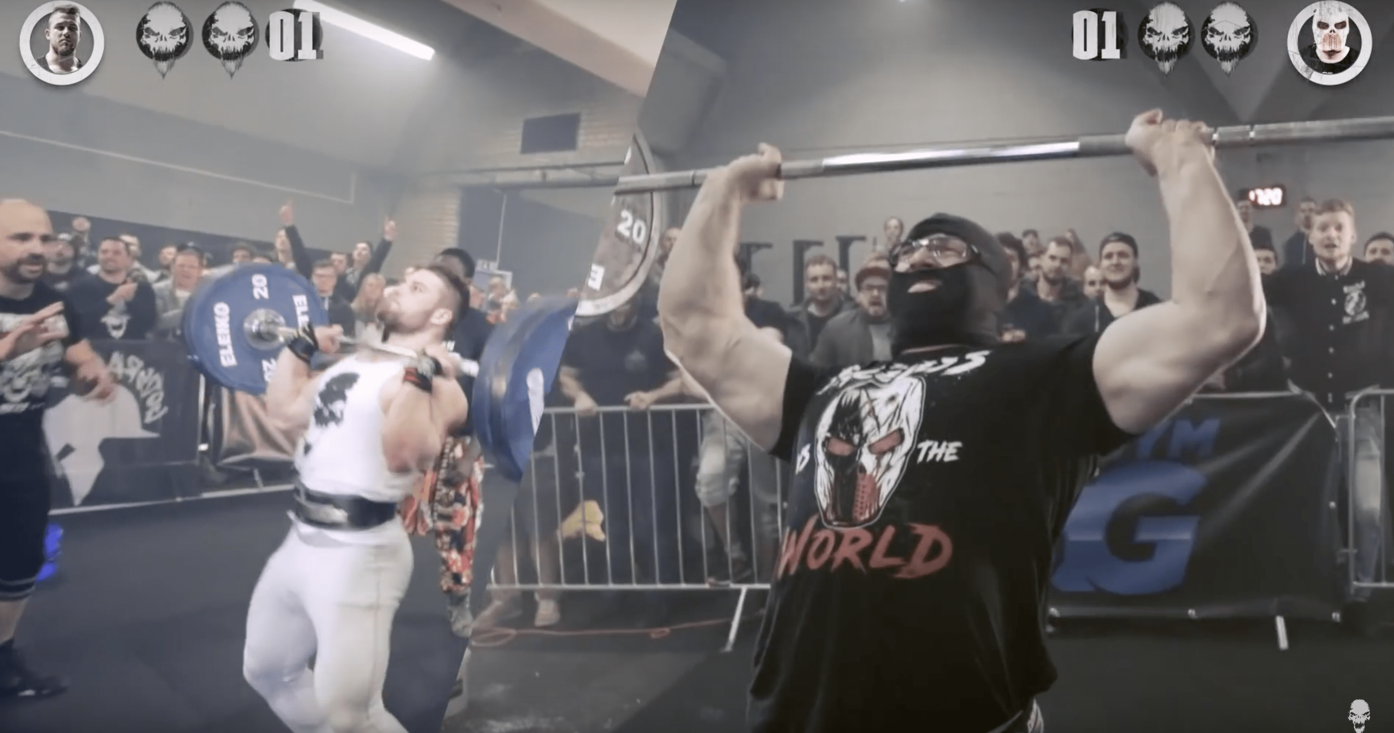 Nun wird es richtig spannend. Matt macht sich an die 10 Ground to Overheads und kann seine Führung bei den ersten Wiederholungen noch beibehalten. The Faceless hingegen kämpft weiter mit den Klimmzügen und kassiert bei den letzten Wiederholungen weitere No-Reps, was ihn wiederum jede Menge Kraft kostet. Als der polnische Powerlifter dann doch den letzten Klimmzug mit „Ach und Krach“ absolviert, liegt sein Herausforderer bereits mit fünf (von insgesamt 10) Wiederholungen in Führung.