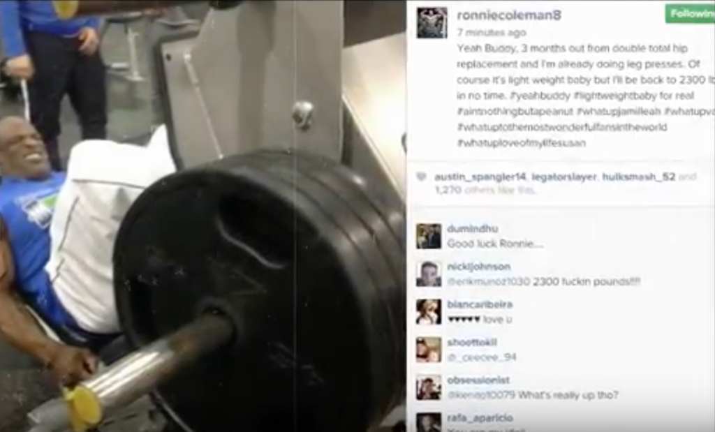 Ronnie Coleman war als aktiver Wettkampf-Bodybuilder bekannt dafür teilweise mit Gewichten zu trainieren, mit denen er selbst den stärksten Männer der Welt hätte Parole bieten können. Spektakulär sind seine Training-Clips, in denen er Kniebeugen und Kreuzheben mit jenseits von 360kg absolvierte, an der mit über einer Tonne beladenen Beinpresse 10 Wiederholungen „runterspulte“ oder vorgebeugtes Langhantelrudern mit 225kg machte. Natürlich war sich Coleman seiner fast schon „unmenschlichen“ Kraft bewusst und machte sich dieser beim Powerlifting zu nutze. Vor allem zu Beginn seiner Bodybuilding-Karriere nahm er zwischen den Shows an dem ein oder anderen Powerlifting-Contest teil.