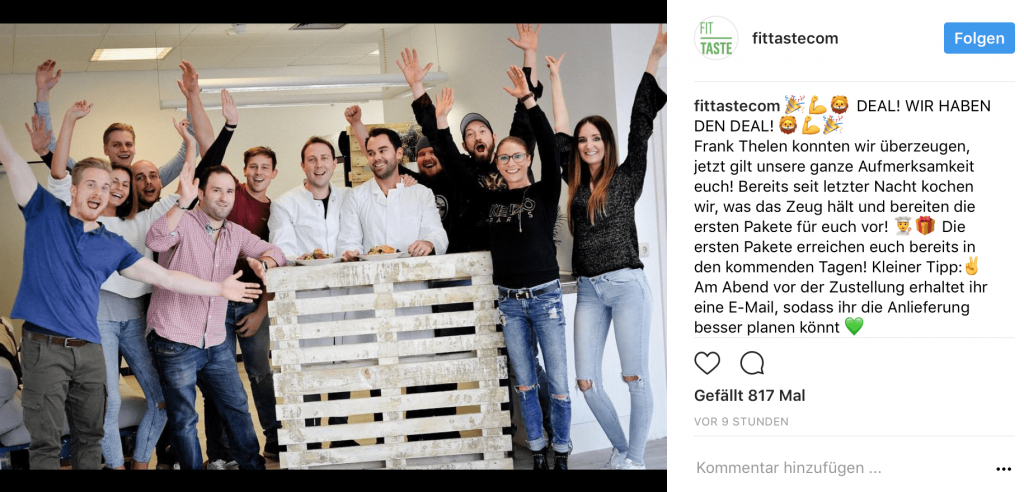 Wir sind gespannt, welche Maßnahmen das Start-up nun ergreifen kann, um noch mehr Menschen mit ihren Fitnessmeals zu erreichen. Der gestrige Tag wird sicherlich in die Geschichte des jungen Unternehmens eingehen!