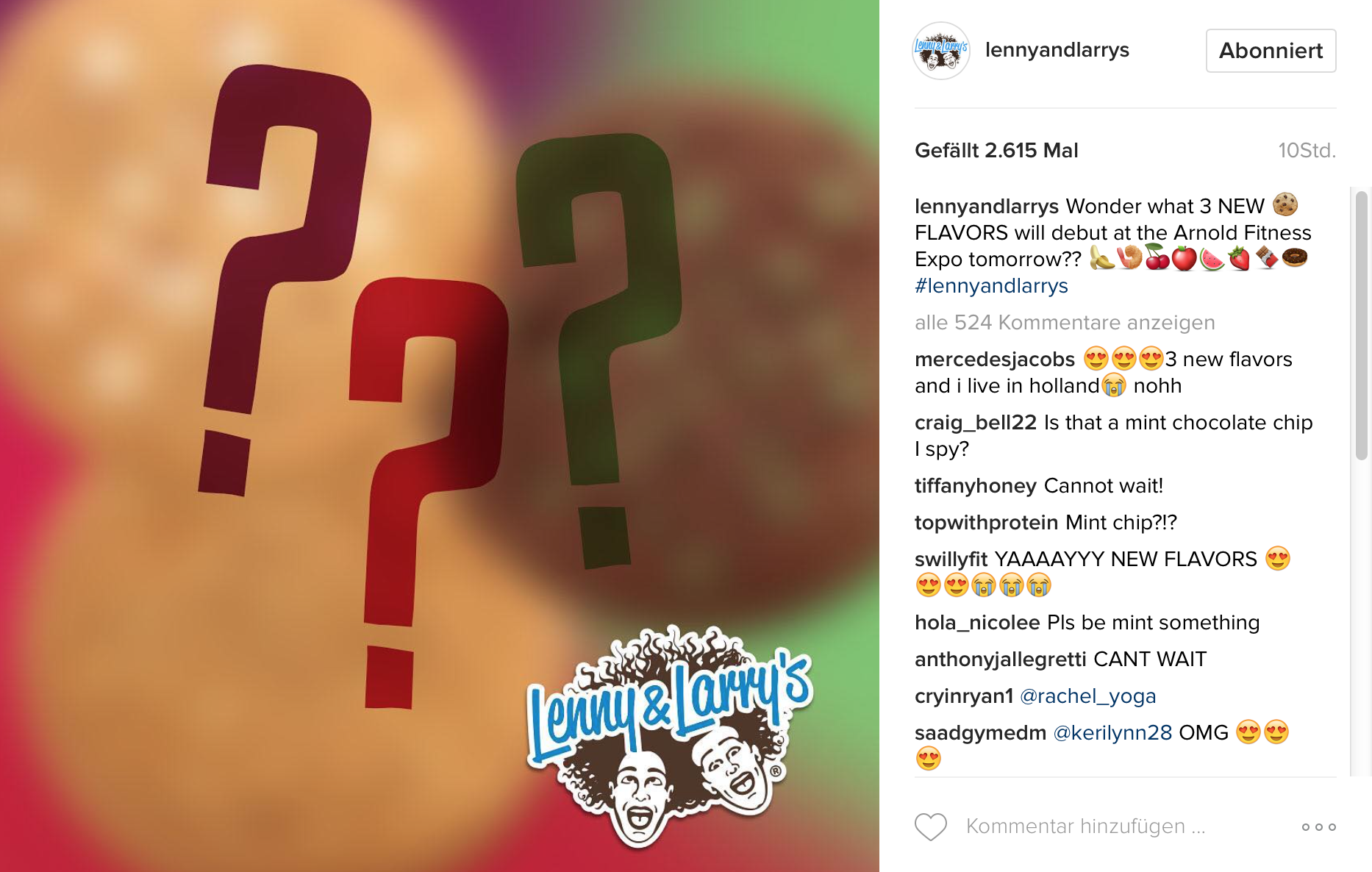 Unter dem oben abgebildeten Post haben sich schon rege Diskussionen und Spekulationen entfacht. Fans können es kaum abwarten und haben offensichtlich viel Spaß am Rätselraten um die neuen Geschmäcker. Dabei wünscht sich die Mehrheit eine Chocolate Mint Version. Einige hoffen, dass es Red Velvet oder Sugar Cookie sein wird. Hoch im Kurs ist auch alles rund um das Thema Erdnussbutter.