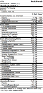 Laut Hersteller soll der neue NARC Nemesis sowohl alt bewehrte Inhaltsstoffe, als auch neue Formulierungen vereinen. Dementsprechend findet man in der Zutatenliste Klassiker, wie Citrulline Polyhydrate, Beta Alanin und Kreatin, Tryosin und Taurin oder Koffein und Grüntee. Insgesamt liefert eine Portion damit schon einige Wachmacher. Die Besonderheit der neuen Formel stellt vor allem die neue „Antioxidant & Hydrate Matrix“. Durch sie verspricht der Hersteller eine noch bessere Regeneration vom Training und damit noch schnellere Muskelzuwächse.