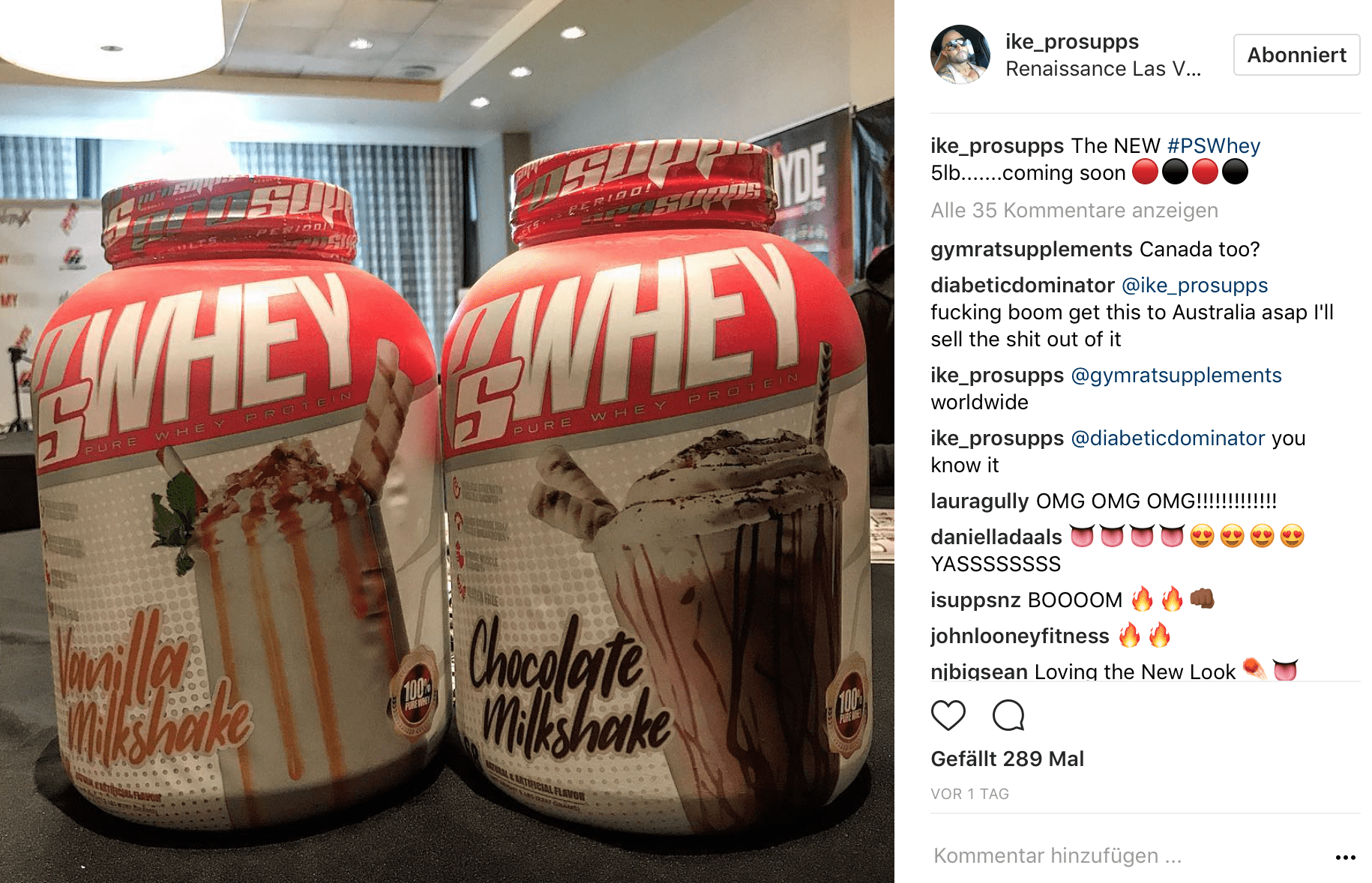 Last but not least hat der Co-Founder der Marke noch eine Ankündigung gemacht, aus der man bisher noch nicht ganz schlau wird. Offenbar wird es auch ein neues Eiweißpulver von ProSupps geben. Inwiefern sich dieses von den beiden bereits erhältlichen Produkten unterscheidet, ist noch nicht klar. Man kann nur mutmaßen, dass ProSupps hier auf „Milkshake“-inspirierte Geschmacksrichtungen setzt. Möglicherweise arbeiten die Entwickler hier an einem Merhkomponenten-Eiweiß. Das würde sicherlich für ein cremigeres Ergebnis sorgen. Außerdem gibt es ja bereits ein reines Whey und ein Whey Isolat von den Amerikanern.
