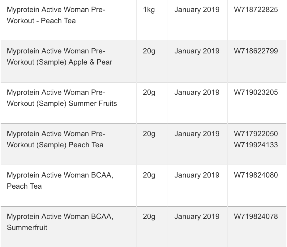 Welche Länder und welche Kunden tatsächlich davon betroffen sind, ist bis dato nicht bekannt. Solltet ihr eines der oben genannten Produkte von MyProtein bezogen haben, raten wir Euch auf jeden Fall UMGEHEND, sowohl den „Batch Code“ (Chargen-Nummer), als auch das „Best before end date“ (Mindesthaltbarkeitsdatum) auf dem Produkt mit dem auf der Liste zu vergleichen und zu PRÜFEN.