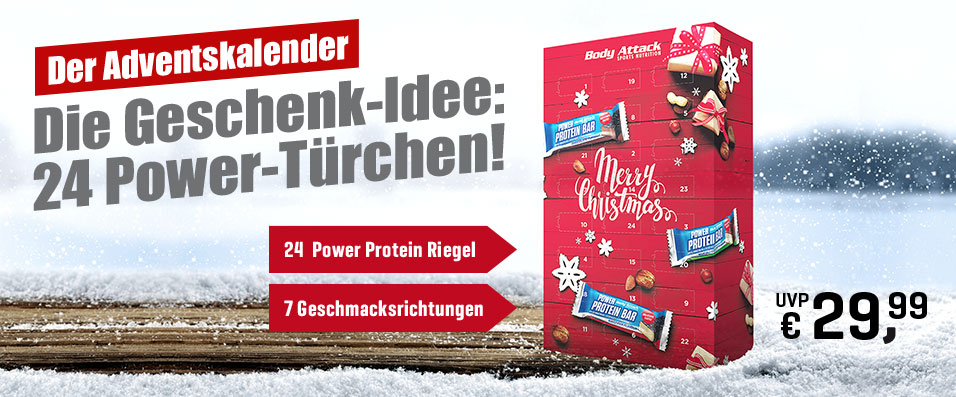 Der Kalender des deutschen Supplementherstellers beinhaltet in diesem Jahr ausschließlich Proteinriegel. Dementsprechend kommen vor allem Riegel-Junkies sicherlich auf ihre Kosten. Laut Body Attack soll der Adventskalender sieben verschiedene Geschmacksrichtungen des hauseigenen Power Protein Riegels beinhalten. Wer den Riegel mag oder testen möchte, sollte sich allerdings beeilen, denn Body Attack gibt an, dass es den Kalender in einer streng limitierten Auflage gibt. Das bedeutet, er könnte bald schon vergriffen sein!