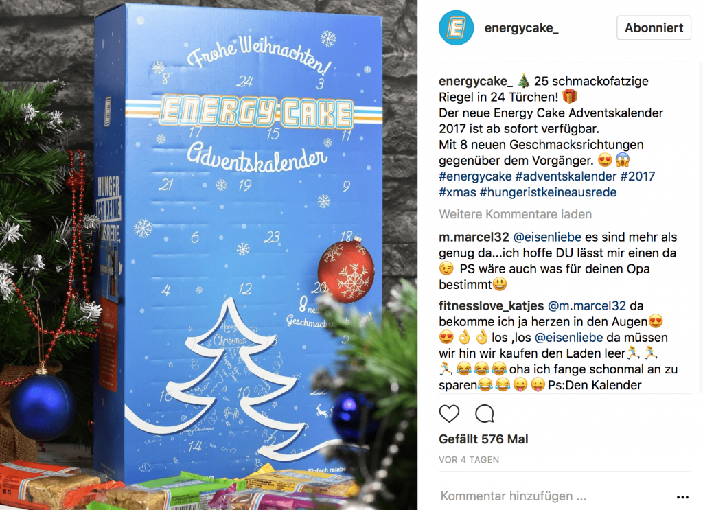 Der Adventskalender des Haferriegel-Herstellers Energy Cake hat beinahe schon Kultcharakter in der Szene. Deshalb wird die Marke auch in diesem Jahr wieder für ordentlich Gains zur Vorweihnachtszeit sorgen. Diesmal verspricht Energy Cake dabei gleich acht neue Geschmacksrichtungen, die sich hinter den einzelnen Türchen verbergen.