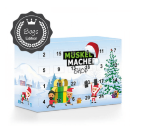 Ebenfalls wieder mit dabei ist der Fitness Adventskalender von Body Attack. Der Hersteller hat diesmal aber ebenfalls gleich zwei Varianten zur Auswahl. So können Proteinriegel Fans auf den Riegel Adventskalender mit 24 unterschiedlichen Eiweißsnacks zurückgreifen. Wem das nicht genug ist, der sollte einen genaueren Blick auf den großen Kalender werfen. Hier sind nämlich die beliebtesten Body Attack Produkte enthalten. Dementsprechend kommt auch der Preisunterschied zustande. Während der Riegel Kalender nur 29.90 Euro kostet, muss man für die große Version stolze 69.90 Euro hinlegen. Dafür sind aber mit Sicherheit auch einige „full size“-Produkte enthalten.