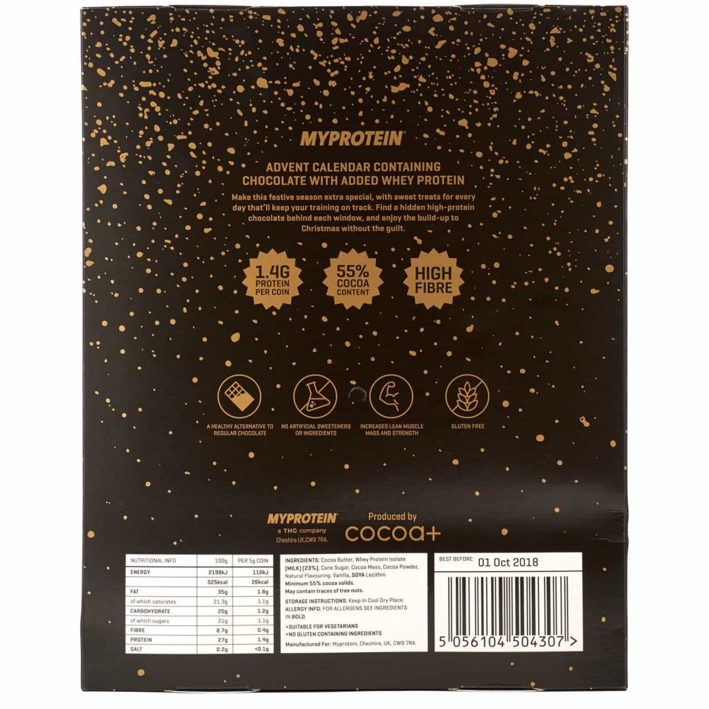 In der Kindheit war die Schokolade aus dem Adventskalender immer etwas ganz Besonderes, oder? Man hatte fast immer das Gefühl, die darin enthaltene Schokolade schmeckt ganz anders und irgendwie besser, als andere. Diese Kindheitserinnerungen will MyProtein nun wohl zurück nach Hause holen. Deshalb setzt der Discounter, im Gegensatz zu vielen anderen Herstellern, auf einen klassischen Schokoladen-Adventskalender. Allerdings unterscheidet dieser sich natürlich von herkömmlichen Kalendern, die man im Supermarkt findet. Statt gewöhnlicher Schokolade, hat MyProtein hierfür nämlich Protein Schokolade verwendet. Diese soll neben Kakaobutter auch das hauseigene Molkeneiweiß Isolat enthalten und so für den nötigen Proteingehalt sorgen. Zusätzlich ist die Schokolade frei von künstlichen Süßstoffen.