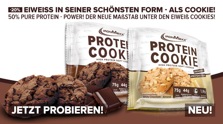 Damit reiht sich IronMaxx mit ihrem neuen Protein Cookie doch neben Body Attack ein, wenn es um den Proteingehalt geht. Bleibt abzuwarten, ob die beiden Kekse beim Geschmackstest einen Sieger zum Vorschein bringen. Wir sind jedenfalls gespannt, ob der Protein Cookie von IronMaxx mit über 50 Prozent Eiweiß uns ähnlich überzeugen kann, wie der hauseigene Zenith Riegel, der ebenfalls eine echte Eiweiß-Bombe ist.