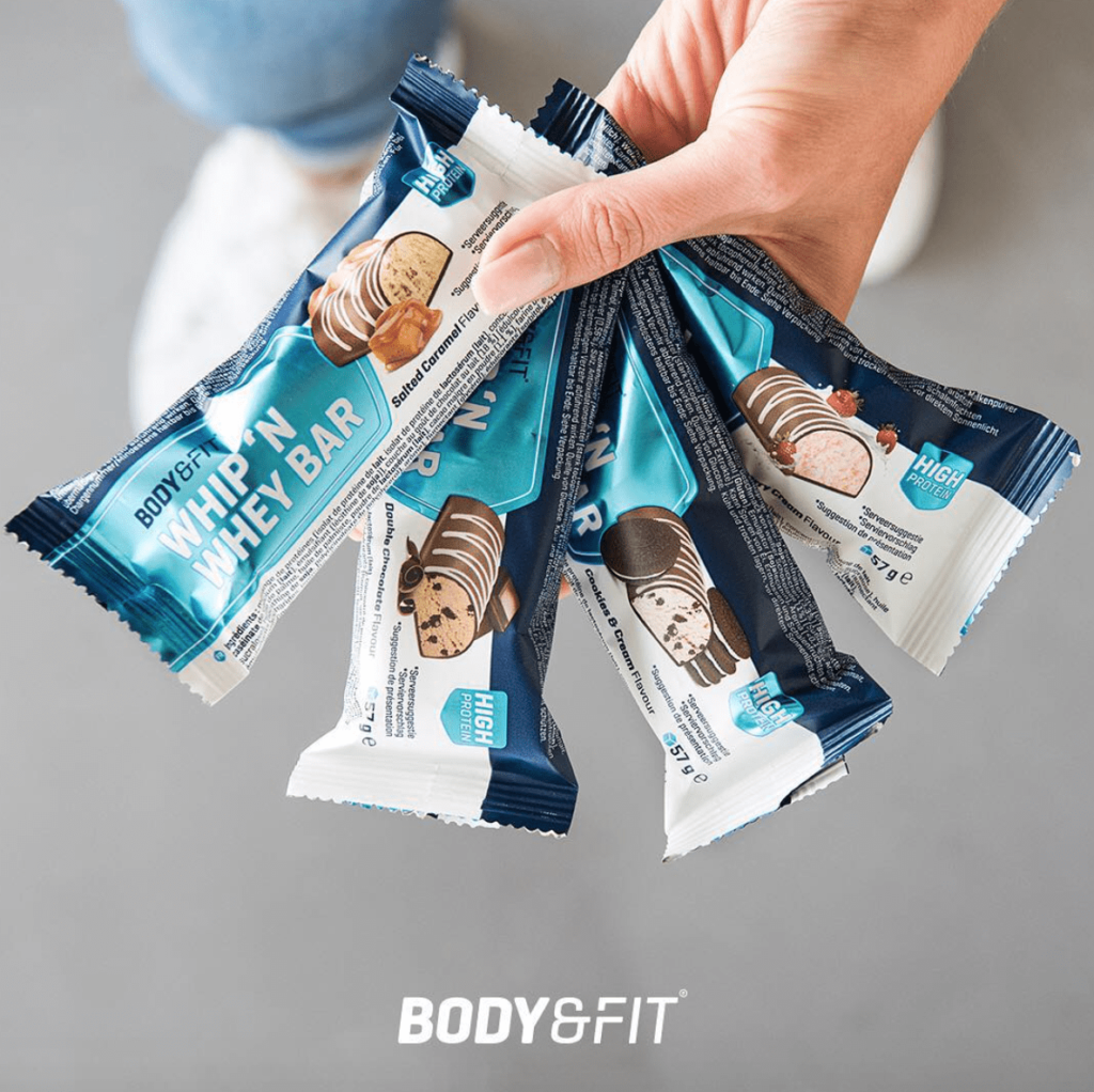 Der holländische Online Shop Body & Fit hat inzwischen auch bei seiner Eigenmarke ein breit aufgestelltes Sortiment. Die Entwickler lassen sich dabei ständig etwas Neues einfallen, um ihre Kunden mit Leckereien zu versorgen. Besonders das Riegelsortiment hat hierbei eine großartige Vielfalt zu bieten. Egal ob mit Schokoüberzug, vegan, „crispy“ oder „clean“, Body & Fit hat beinahe alles am Start. Doch jetzt hat der Hersteller ein Produkt gelauncht, das uns enorm an die Bestseller Riegel von Optimum Nutrition erinnert. Nicht nur die Optik, sondern auch der Name scheint verwechselnd ähnlich. Die so genannten „Whip ’n Whey Bars“ gibt es zudem auch noch in den gleichen Sorten, wie die Whipped Bites von ON. Ob das Zufall ist?