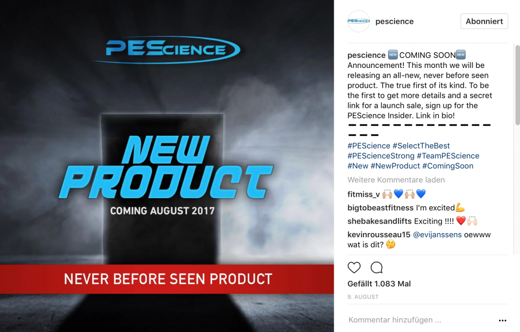 Vor wenigen Tagen hat die amerikanische Supplement Marke PEScience auf Instagram angekündigt, dass sie diesen Monat noch eine absolute Weltneuheit auf den Markt bringen wird. Da der Hersteller für qualitativ hochwertige, innovative Produkte mit wissenschaftlichem Hintergrund bekannt ist, war das Erwarten dementsprechend groß. Laut PES soll es sich bei dem neuen Produkt um ein „noch nie da gewesenes“ Supplement handeln. Nun ist das Geheimnis gelüftet. Wieso die Neuheit eher eine riesige Enttäuschung sein könnte, verraten wir euch im Folgenden!