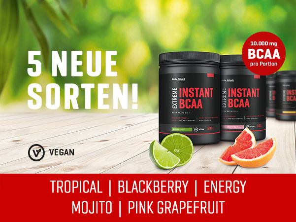 Zur Einführung hat Body Attack die Instant BCAAs bis einschließlich 16.10. zum Sonderpreis im Online Shop. Wer also Nachschub benötigt und die neuen Geschmacksrichtungen testen möchte, hat hiermit die ideale Gelegenheit!