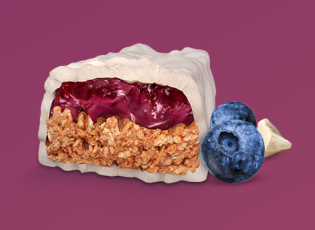 Hierbei handelt es sich um einen knusprigen Riegel, der den Cereal Bars von Quest entsprechen soll. Allerdings hat er zusätzlich eine Blaubeerfüllung und ein Coating aus weißer Proteinschokolade.