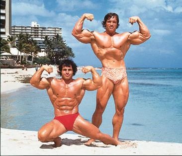 Wir sind zwar kein Bodybuilding-Experten, aber wir sind uns ziemlich sicher, dass Arnold und Franco zusammen 12 oder 13 Mr. Olympia Titel gewonnen haben und dass ihre Muskeln der Körpermitte alles andere als klein waren. Sie sehen beide aufgrund der richtigen Ernährung und des richtigen Cardioprogramms schlank aus. Aber „schmal“ wäre würde man jetzt nicht unbedingt verwenden, um einen dieser beiden Herren zu beschreiben. Die Masse im Bereich des oberen Rückens und des Latissimus verleiht ihnen das „V“-förmige Aussehen.