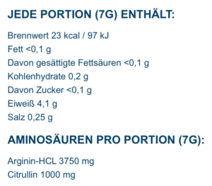 L-Citrullin wirkt ähnlich und unterstützt somit die Wirkung des Pump Boosters. Beide Zutaten zusammen können einen deutlich besseren Pump-Effekt erzielen, als jeweils isoliert. Daher ist die Zusammensetzung des Arginine Complex Powders schon recht clever gewählt. Allerdings haben wir bei der Portionsangabe doch einige Bedenken. Sofern man sich an die von IronMaxx vorgegebenen 7 Gramm hält, hätte man lediglich 3.75 Gramm Arginine-HCL und 1 Gramm L-Citrulline. Immerhin empfehlt man Krafsportlern bei beiden Zutaten eher eine Dosierung von mindestens 3 bis 4 Gramm. Die Kombination der beiden Stoffe könnte das Ganze allerdings auch retten. Daher bleibt abzuwarten, was der Praxistest zum Vorschein bringt.
