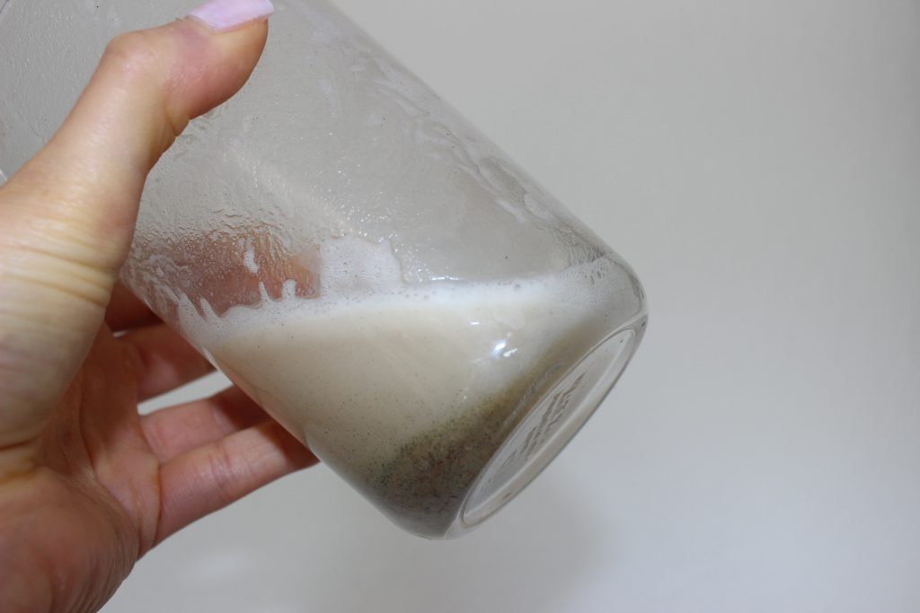 Wir haben den Shake auch eine Weile stehen lassen und festgestellt, dass sich doch einige Rückstände auf dem Boden absetzen. Da das Ganze ein wenig grünlich aussah, gehen wir stark davon aus, dass das Teile des Kürbiseiweiß sind.