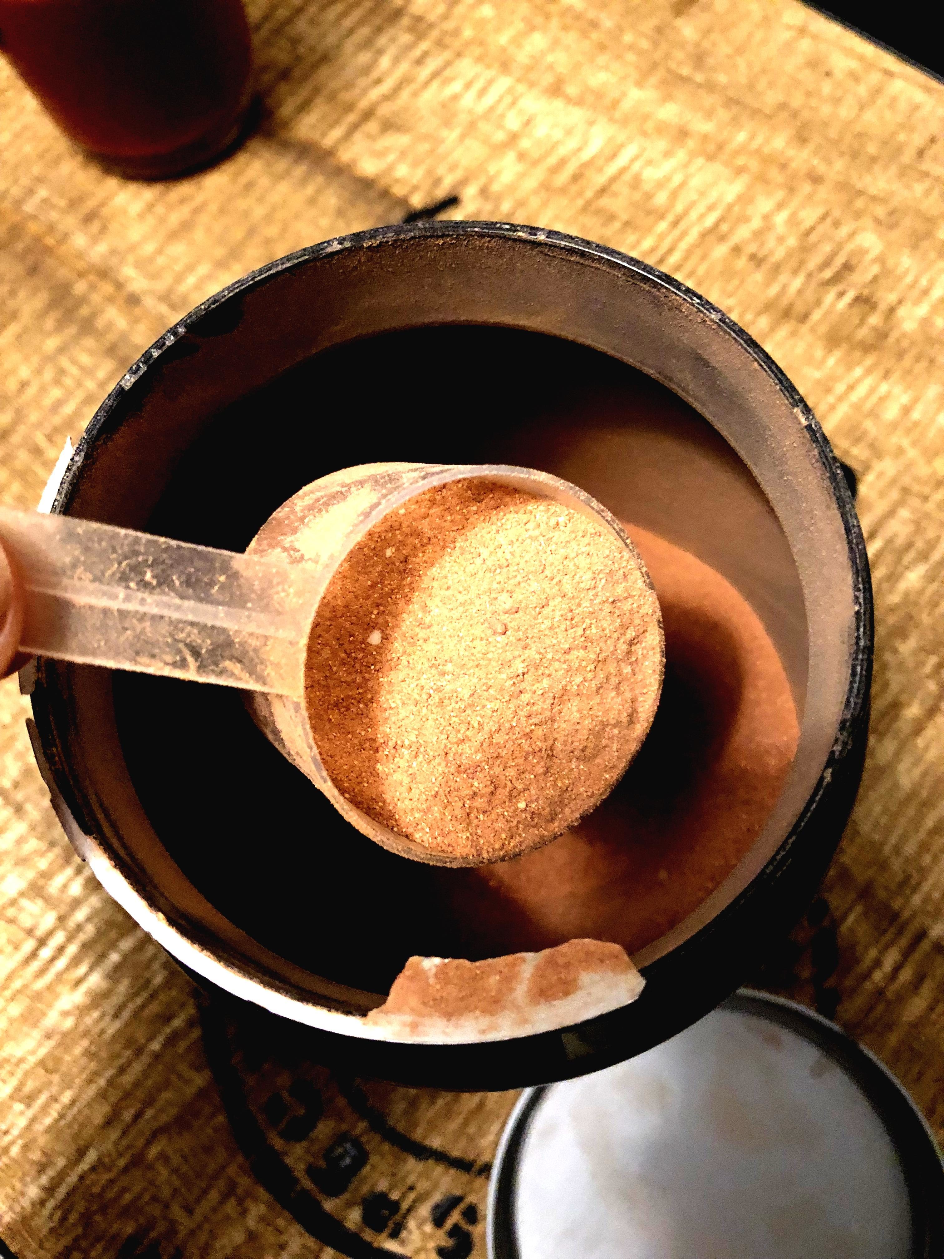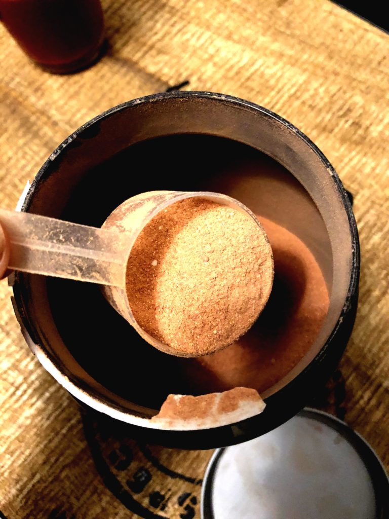 1. Der Messlöffel in unserer Dose ist durch den Hersteller etwas zu groß geraten – anscheinend gab es Probleme bei der Messung des Schüttgewichtes, daher beträgt das Gewicht eines gestrichenen Messlöffels 44g. (Überdosierung ist – trotz Angabe der 25g pro Portion auf der Packung – bei Benutzung eines vollen Scoops so gut wie unmöglich)